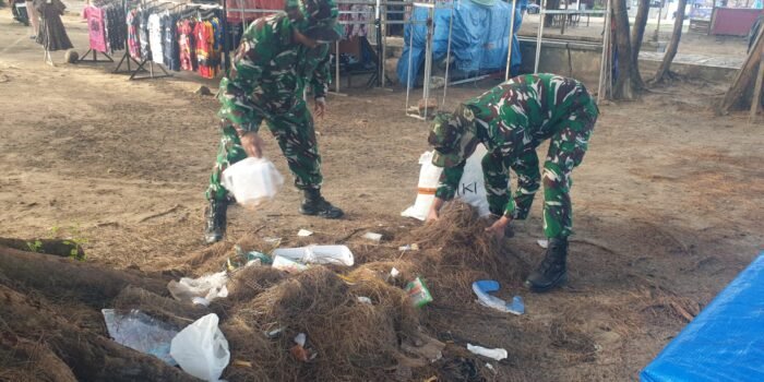 Jaga Keindahan Ikon Wisata, Korem 041/Gamas Bersihkan Objek Wisata Pantai Panjang