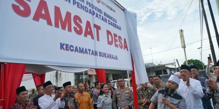 KHAZANAHNEWS.COM**Gubernur Bengkulu, Helmi Hasan, resmi meluncurkan program Samsat Desa di halaman Kantor Bank Bengkulu, Desa Sukaraja, Kabupaten Seluma, Kamis (19/2). Program