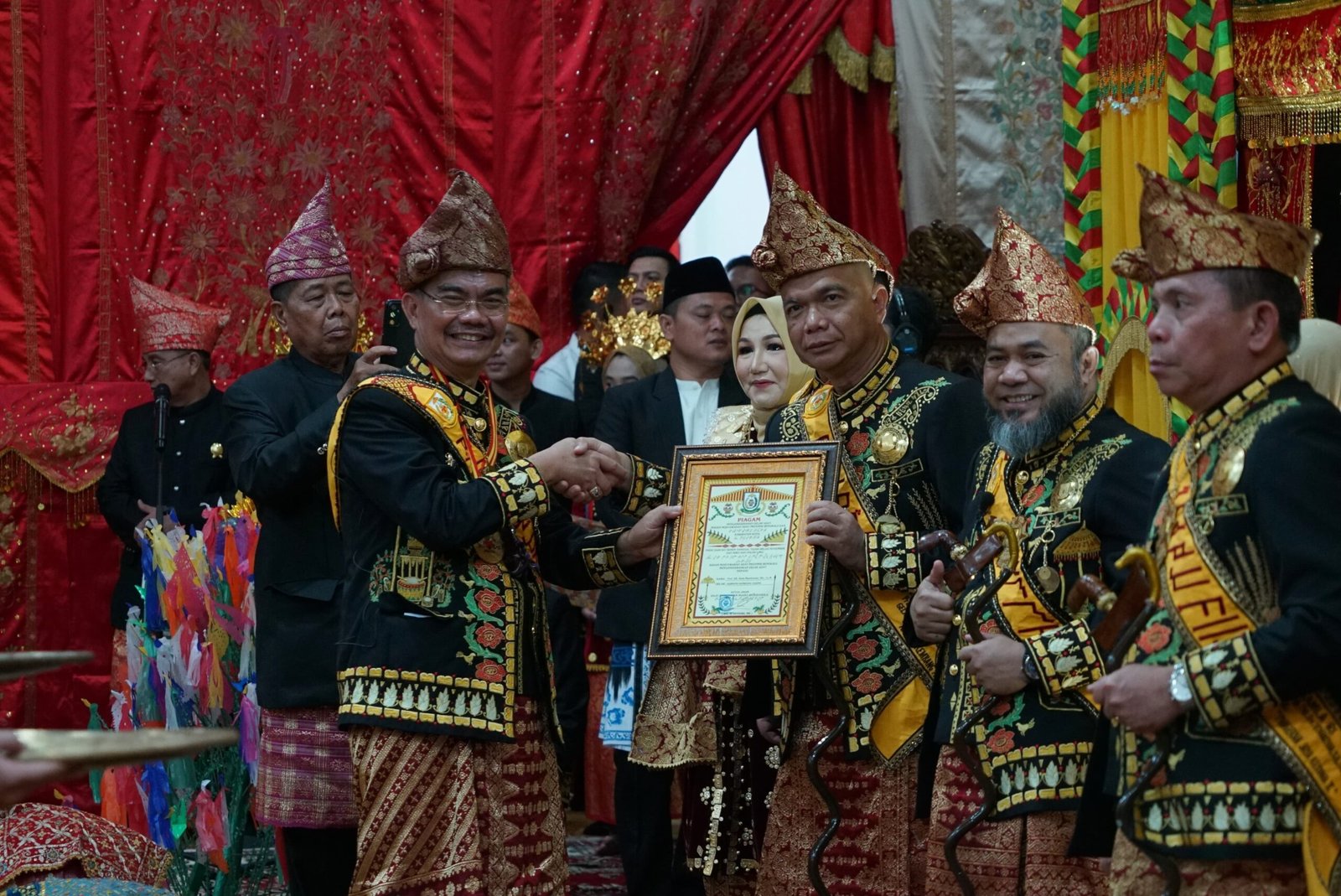 Pada kesempatan yang sama, Ny. Khairunnisa Helmi Hasan juga menerima gelar adat Putri Melaya Deni.