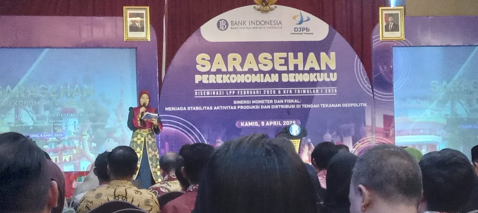 Irfan Oktama Perwakilan BI Bengkulu , Dendi perwakilan Bank Mandiri, Kantor perbendaharaan negara Bengkulu. Narasumber membeberkan dampak perang Timteng ditutupnya selat Hormuz sehingga BBM dan emas harga bergolak dan mengganggu perekonomian dunia. Termasuk berpengaruh pada nilai tukar rupiah. Namun di Indonesia program-program pemerintah menciptakan pertumbuhan ekonomi domestik. BI secara nasional terus menjaga stabilitas dan nilai tukar rupiah. Ekonomi Bengkulu juga terus tumbuh meski melandai karena banyaknya penopang seperti harga sawit dll***hasanah