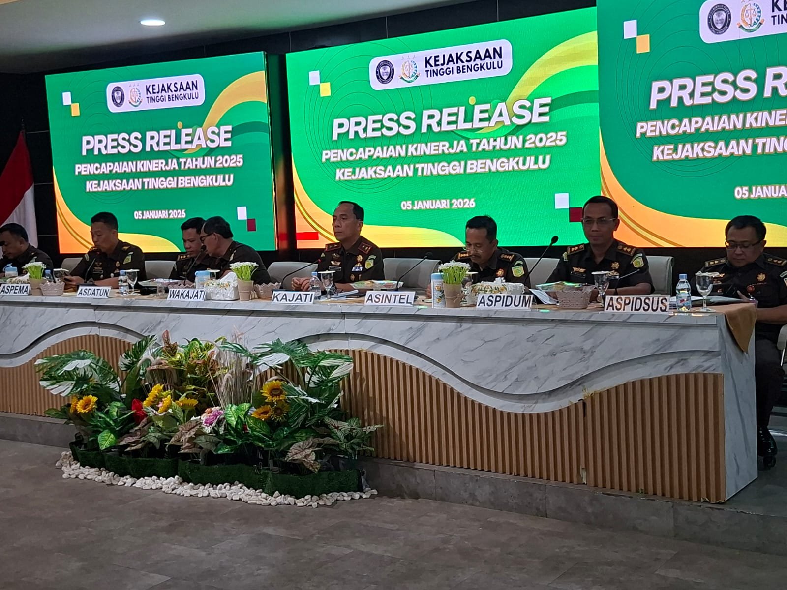 Dalam Press Release Pencapaian Kinerja Tahun 2025 yang digelar, Senin 5 Januari 2026, Kajati Bengkulu Victor Antonius Saragih Sidabutar menjelaskan bahwa selama periode Januari hingga Desember 2025, berbagai bidang telah bekerja keras.