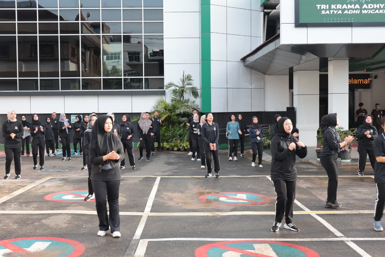 Kegiatan senam pagi berlangsung dengan penuh semangat dan kebersamaan, serta berjalan tertib dan lancar.***has