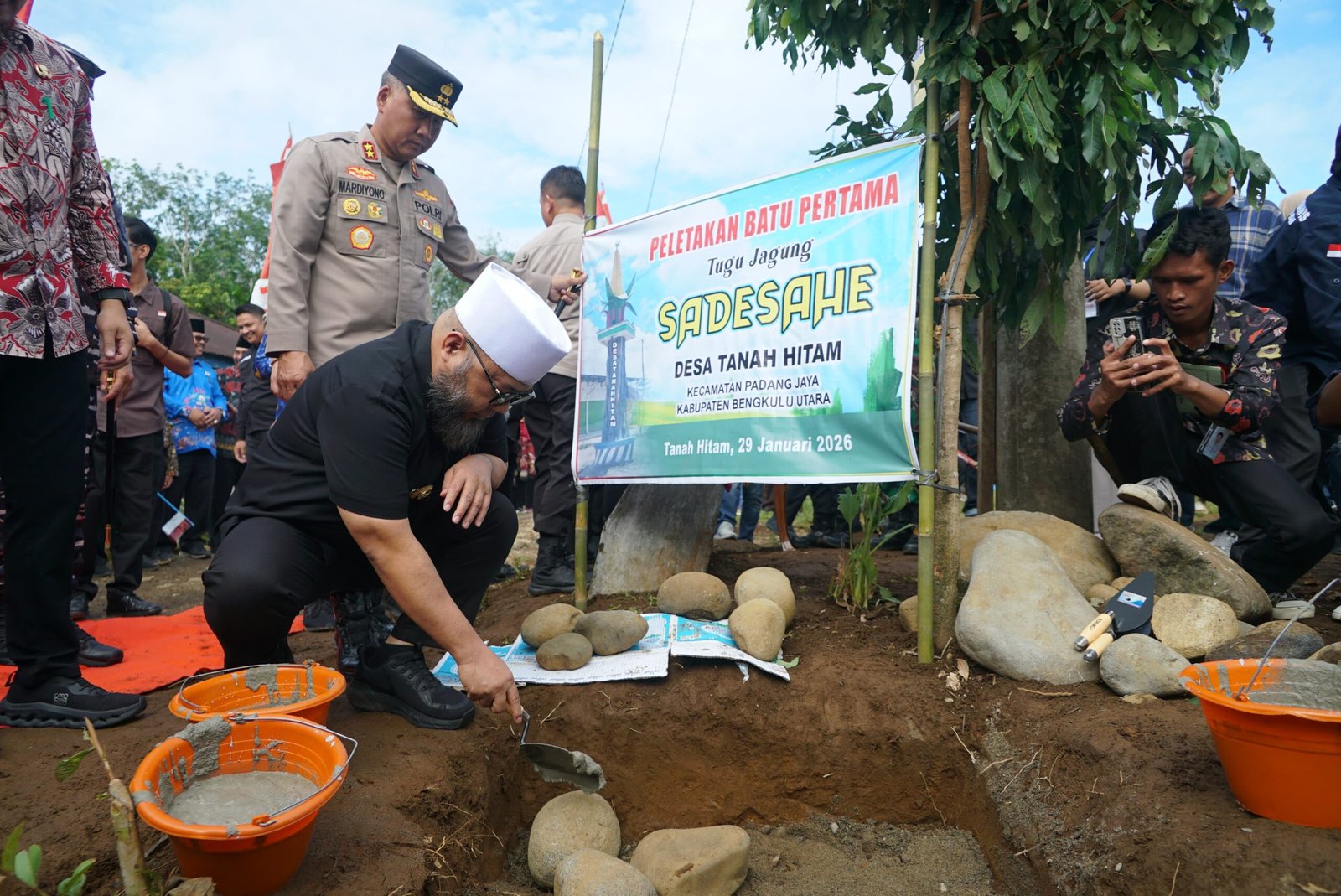 Sebelum pelaksanaan panen raya, kegiatan diawali dengan peletakan batu pertama pembangunan Tugu Jagung sebagai simbol keberhasilan dan semangat keberlanjutan program SADESAHE.