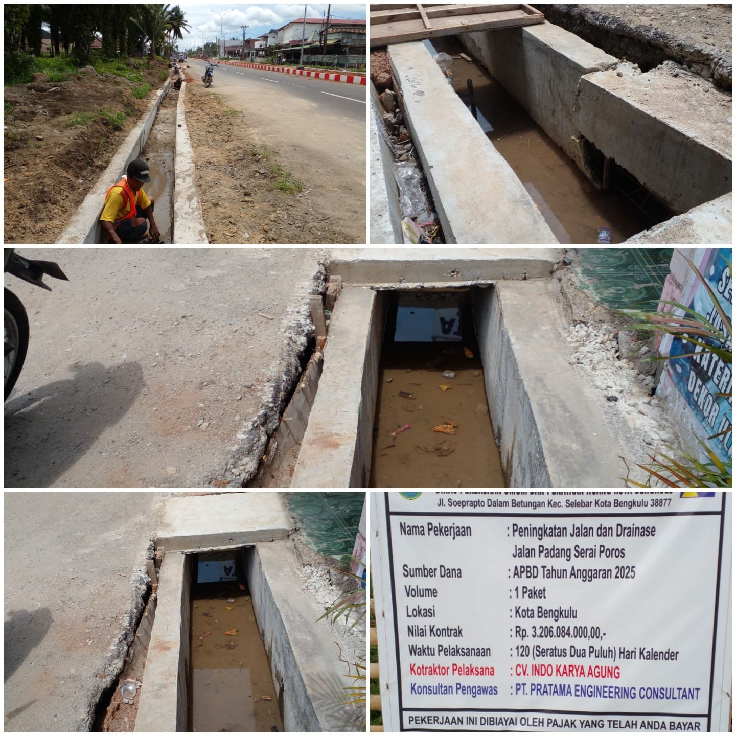 KHAZANAHNEWS.COM**Pekerjaan peningkatan jalan dan drainase jalan Padang Serai Poros Kota Bengkulu yang menguras dana APBD Kota Bengkulu tahun anggaran 2025 berkisar Rp.3,2 miliar sejak awal pengerjaan dikeluhkan warga yang rumahnya dipinggir jalan. Karena proyek peningkatan drainase mengganggu warga yang akan keluar rumah. Karena depan rumah warga yang dibangun drainase dengan lebar kurang lebih setengah meter tidak ada jembatan darurat. Sehingga warga kesulitan melangkah menuju jalan raya, apalagi membawa kendaraan. Sehingga warga terpaksa membangun jalan darurat sendiri.