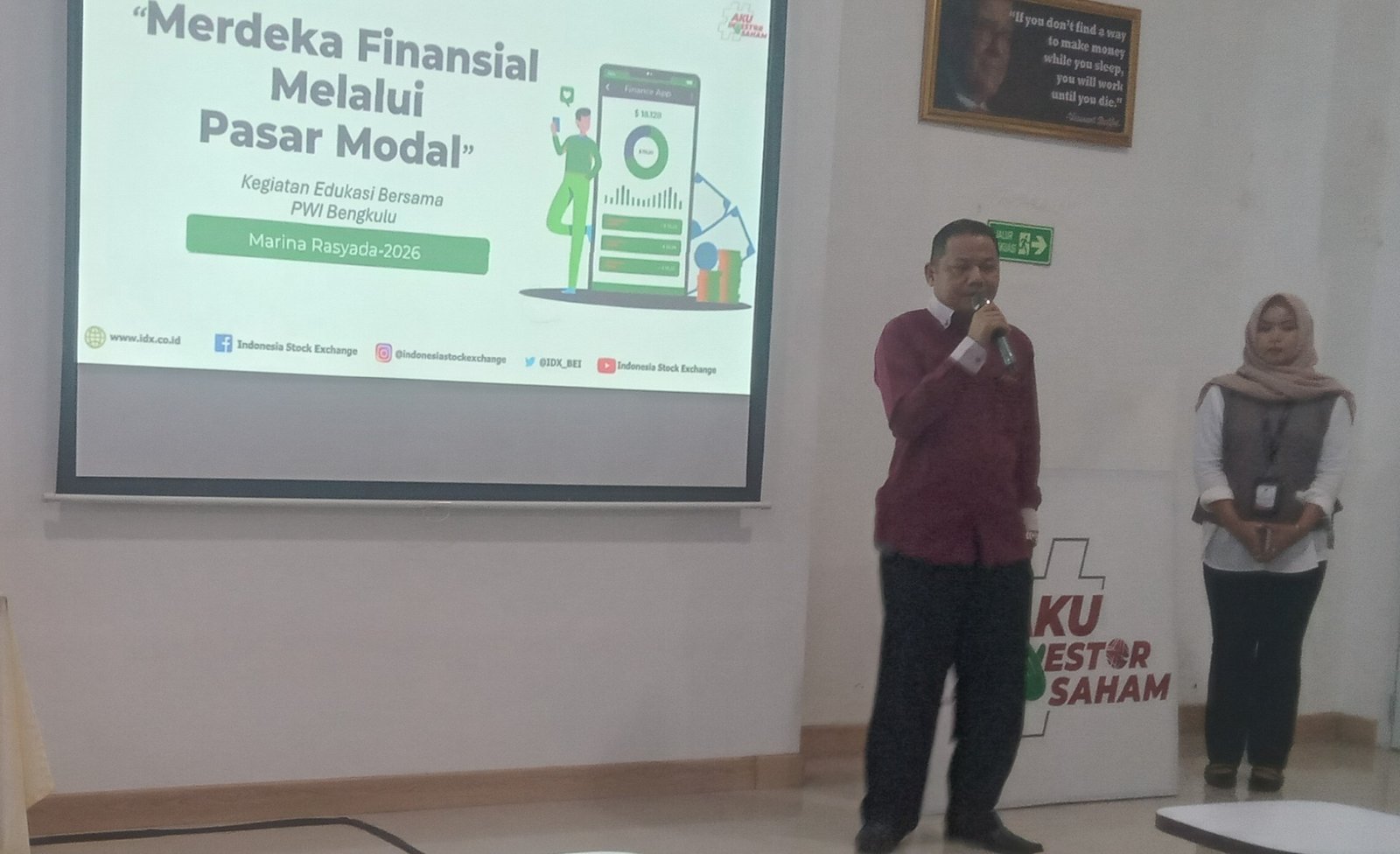 KHAZANAHNEWS.COM** Kepala BEI Bengkulu, Marina menyampaikan sudah terjalin hubungan antara Bursa Efek Indonesia(BEI)dan wartawan PWI dalam WAG. Tugas BEI Bengkulu untuk mengedukasi perusahaan-perusahaan di Bengkulu yang butuh modal agar bisa Go Publik. Tugas dan fungsi BEI Bengkulu membuat peraturan soal bursa efek. BEI di awasi OJK sebagai pembuat regulasi. Kalau berminat membuka investasi harus ke bursa efek.