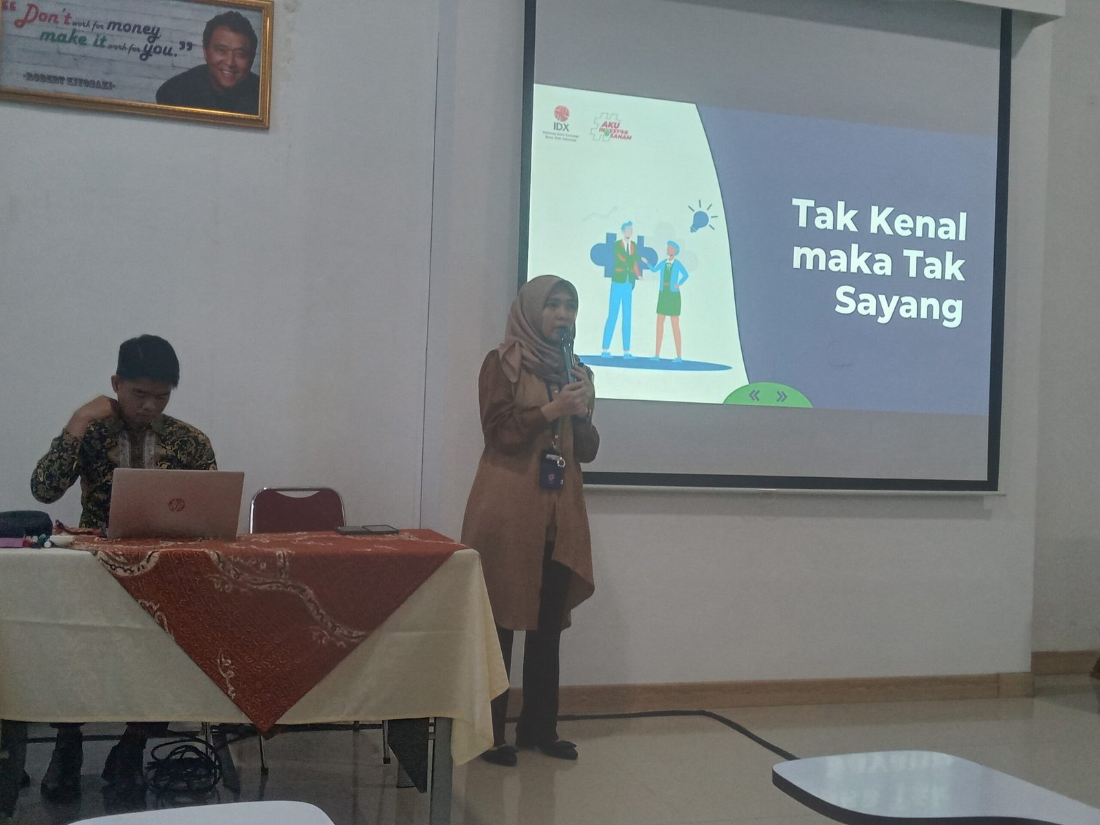 Berinvestasi jangka panjang membuat uang bekerja untuk kita. Investasi banyak jenisnya seperti emas, tanah, kebun dll. Namun tidak mudah terjual namun kalau saham sangat mudah terjual. Puluhan wartawan yang ikut kegiatan diberi peluang ikut investasi saham di bursa efek. Nampak wartawan yang ikut serius menyimak materi yang disampaikan kepala BEI Marina.
