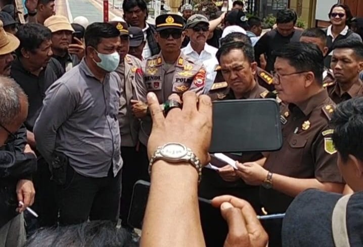 Menanggapi aksi tersebut, Kasi Penkum Kejati Bengkulu, Fri Wisdom SH MH, langsung menemui massa.